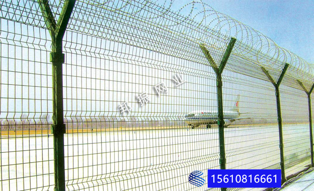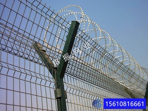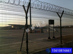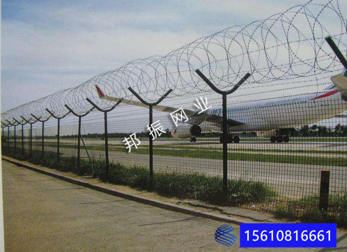 機(jī)場(chǎng)護(hù)欄網(wǎng)又稱作“機(jī)場(chǎng)護(hù)欄”、“Y型安全防御護(hù)網(wǎng)”,它是由V型支架立拄,加強(qiáng)型焊接片網(wǎng),安全防盜連接件和熱鍍鋅刀片刺籠組成是強(qiáng)度和安全防御性級(jí)別很高的隔離柵產(chǎn)品。近年來,被廣泛應(yīng)用在機(jī)場(chǎng),軍事基地等高安全場(chǎng)所。注:如果在機(jī)場(chǎng)護(hù)欄網(wǎng)頂部加裝刀片刺絲、刀片刺繩后又很好的增強(qiáng)了安全防護(hù)性能。