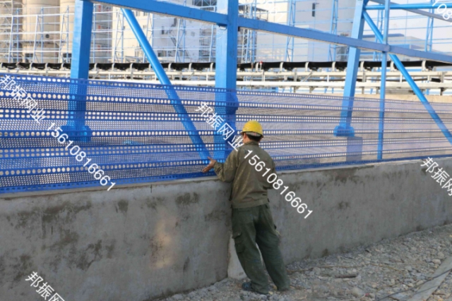 防風(fēng)抑塵網(wǎng)是利用空氣動力學(xué)原理,按照實施現(xiàn)場環(huán)境風(fēng)洞實驗結(jié)果加工成一定幾何形狀、開孔率和不同孔形組合擋風(fēng)抑塵墻,使流通的空氣(強風(fēng))從外通過墻體時,在墻體內(nèi)側(cè)形成上、下干擾的氣流以達(dá)到外側(cè)強風(fēng),內(nèi)側(cè)弱風(fēng),外側(cè)小風(fēng),內(nèi)側(cè)無風(fēng)的效果,從而防止粉塵的飛揚。