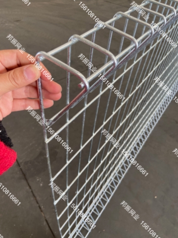 焊接成的隔離網(wǎng),用連接附件與鋼管支柱固定。
